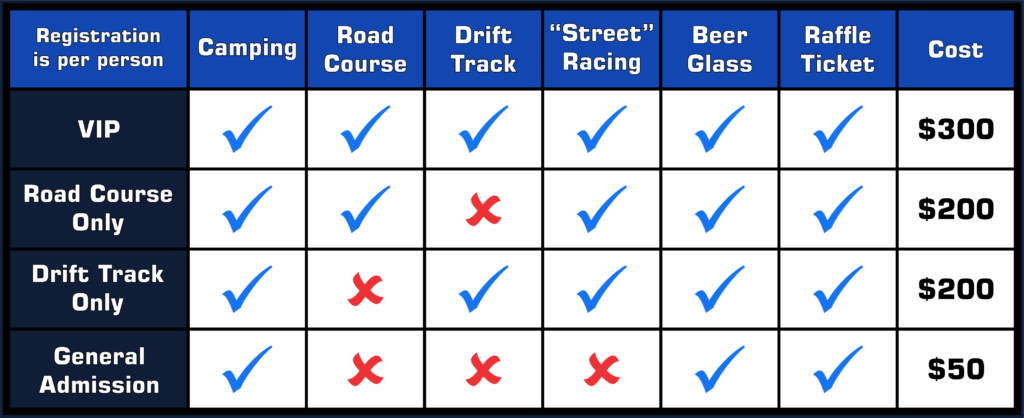 General admission + Oval/Infield Drifting, Camping, Ofest Drinking Vessel